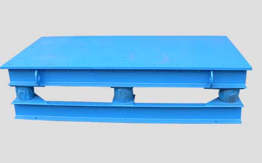 混凝土水溝蓋板振動臺主要由臺底架、振動電機和彈簧等部件組成,臺面與底架均用鋼板和型鋼焊接而成,振動臺是用振動電機加一對相同的偏心輪組成。并通過一對吊架聯(lián)軸器安裝在臺面(反面)中心位置,起著振實過程中平穩(wěn)、垂直方向的作用。